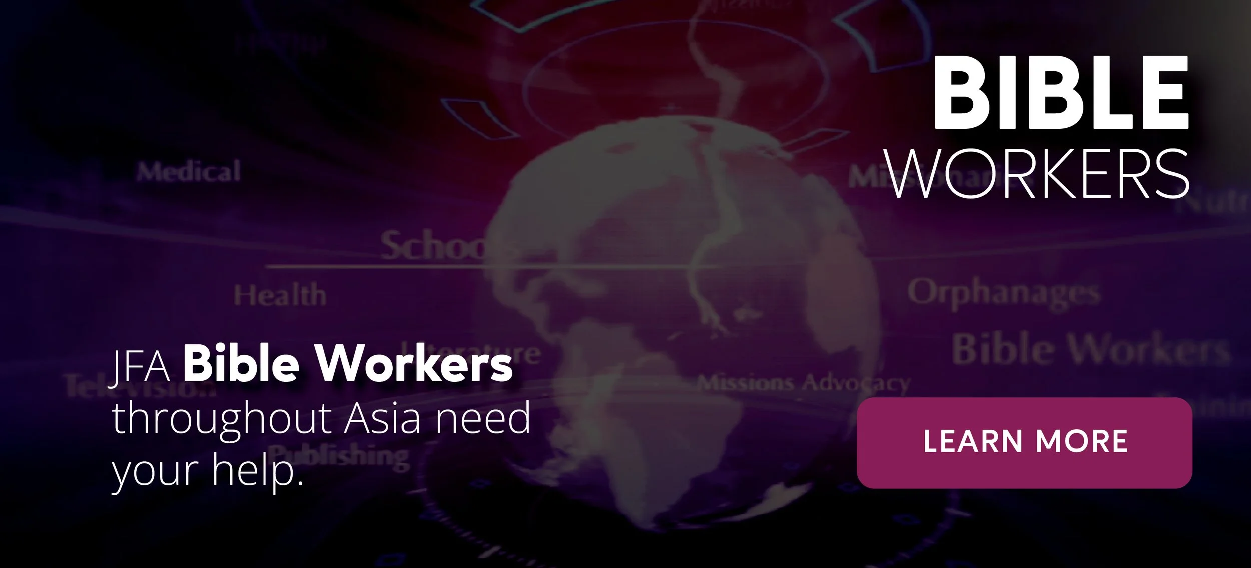 While many of the ministries we support are crucial to the work in Asia, our Bible workers’ sole source of funding comes through your direct support of JFA. Because of this, we want to give you this opportunity to learn more about these locally sourced and trained Bible Workers.