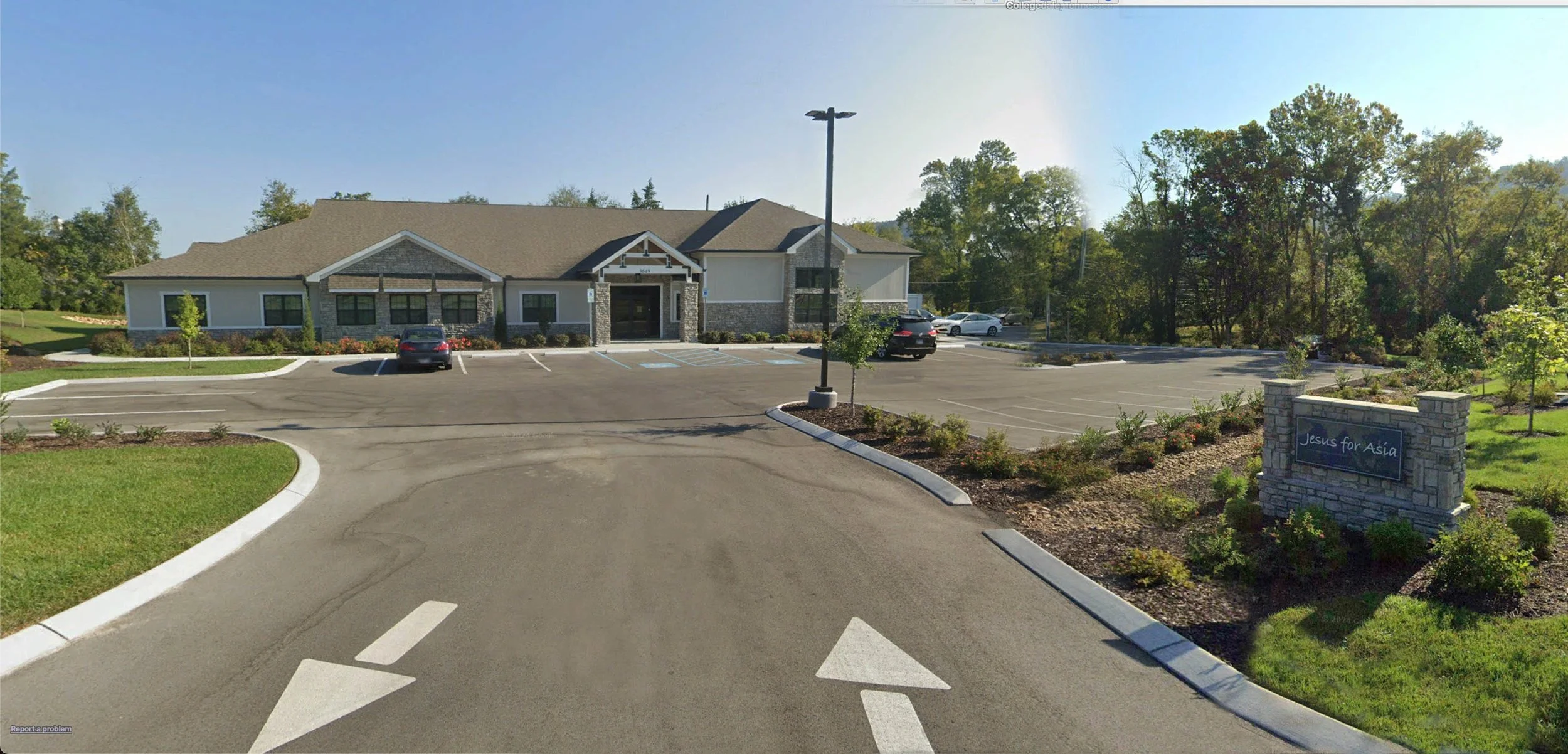 Drive a half mile and turn left at the stop sign onto Leyland Dr. Jesus for Asia will be the first building on the left.