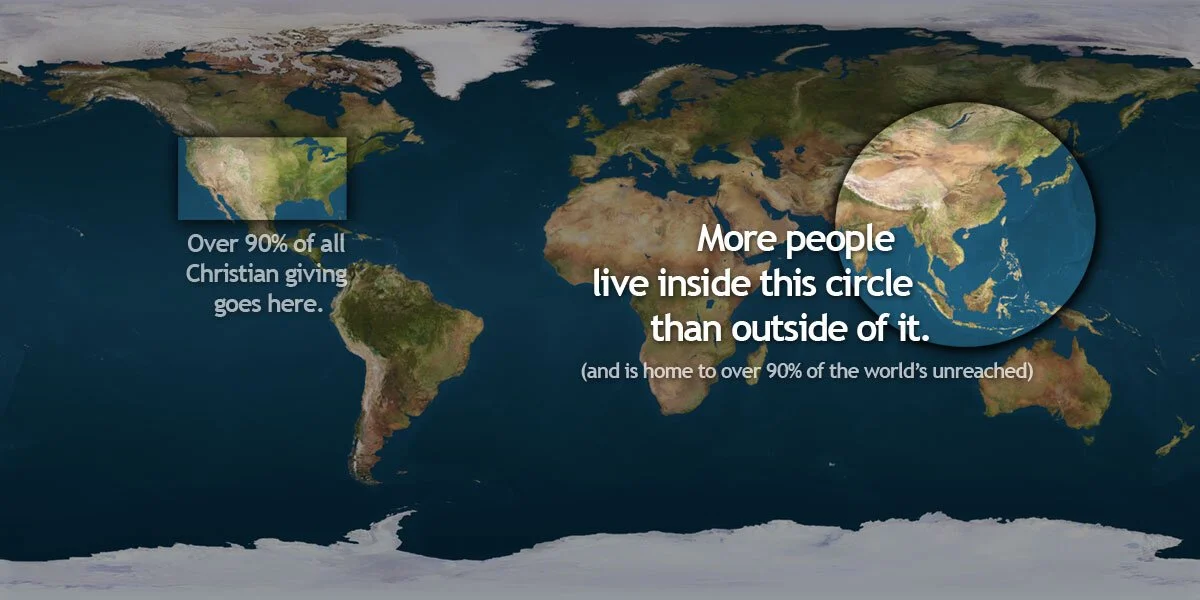Most of those who have never heard the Gospel live inside this circle. Yet a tiny minority of resources (and people) go to serve the unreached of Asia.