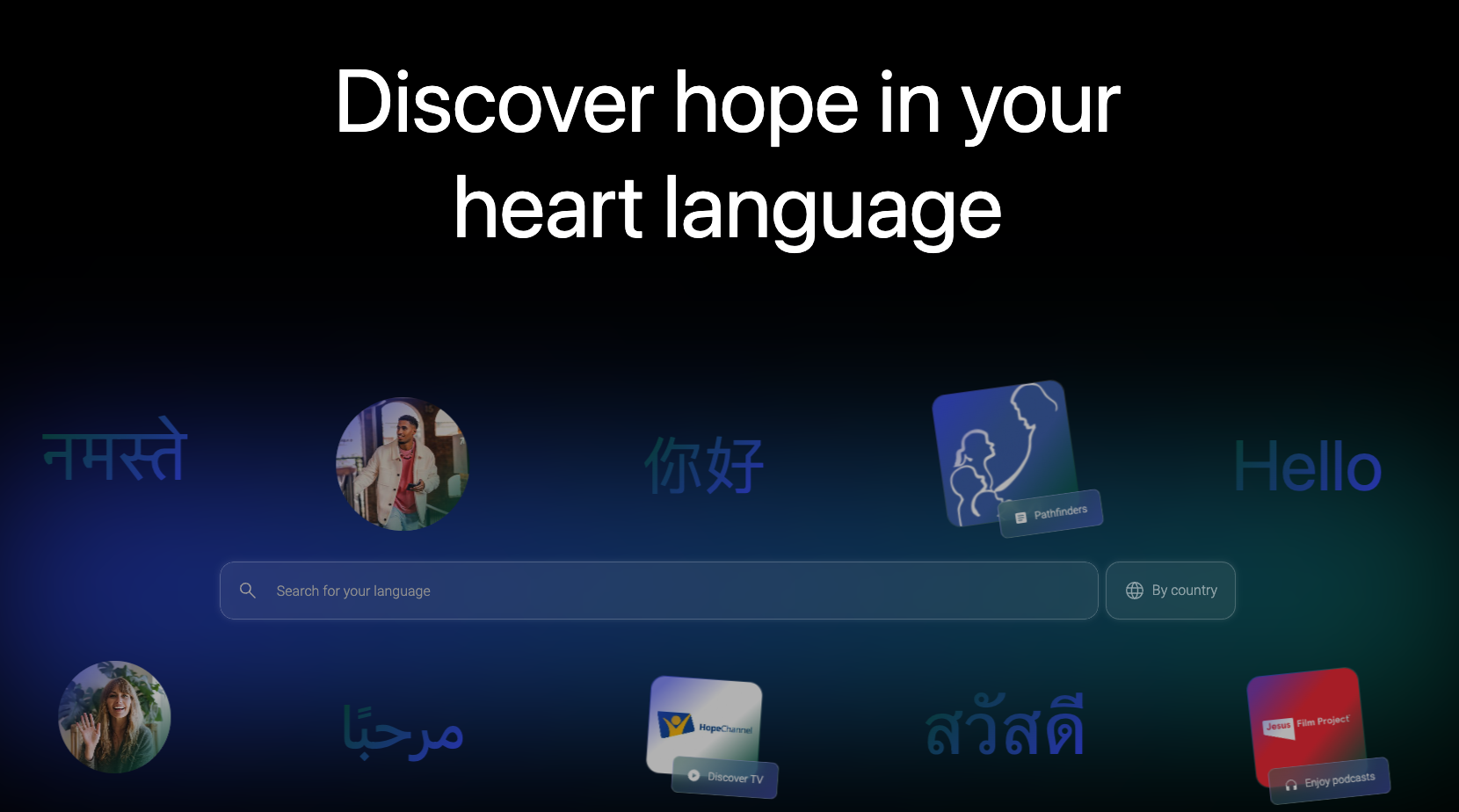 Share the good news with people of over 180 languages at one website! My Language My Life is a portal to radio, TV, Bible Studies, and more, arranged both by languages and countries so you can quickly match those you meet to their heart language. Explore now.