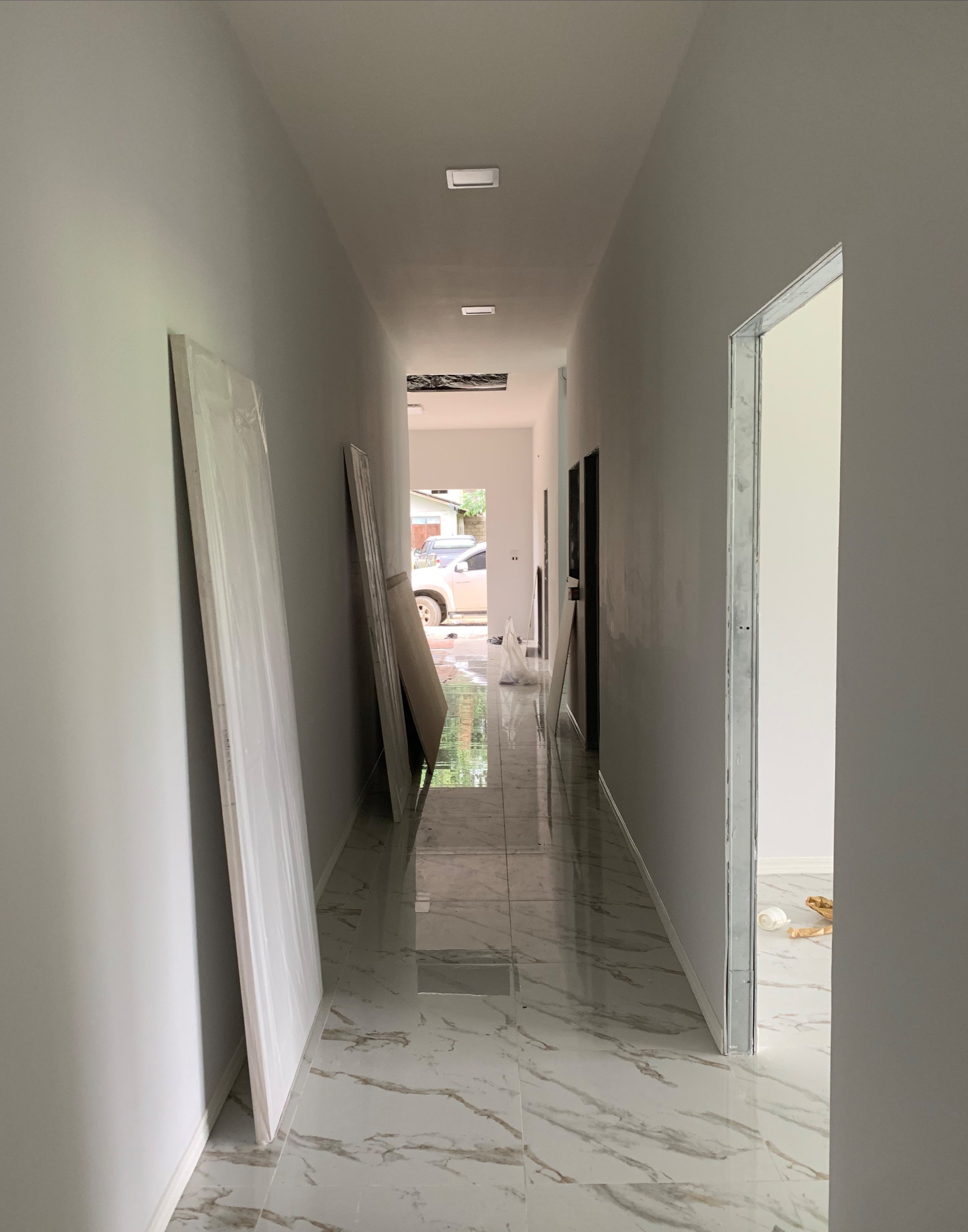 The office spaces and hallways are beginning to look a bit more finished