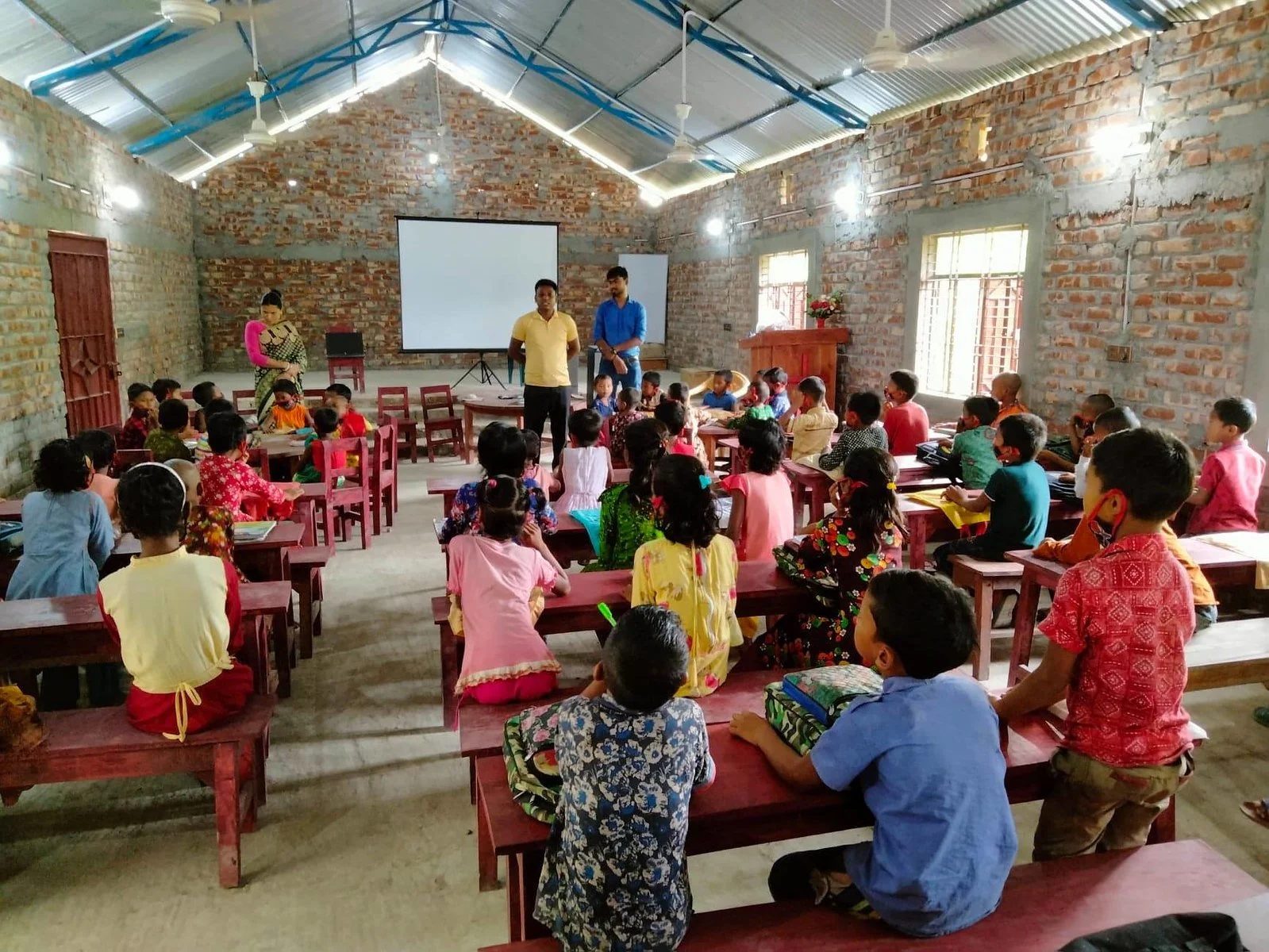 We were able to build a small one-room school where students from kindergarten through second grade learn subjects like Bangla (language arts), Math, English, and Science. The students also take part in a Bible class where they are learning songs and stories from scripture.