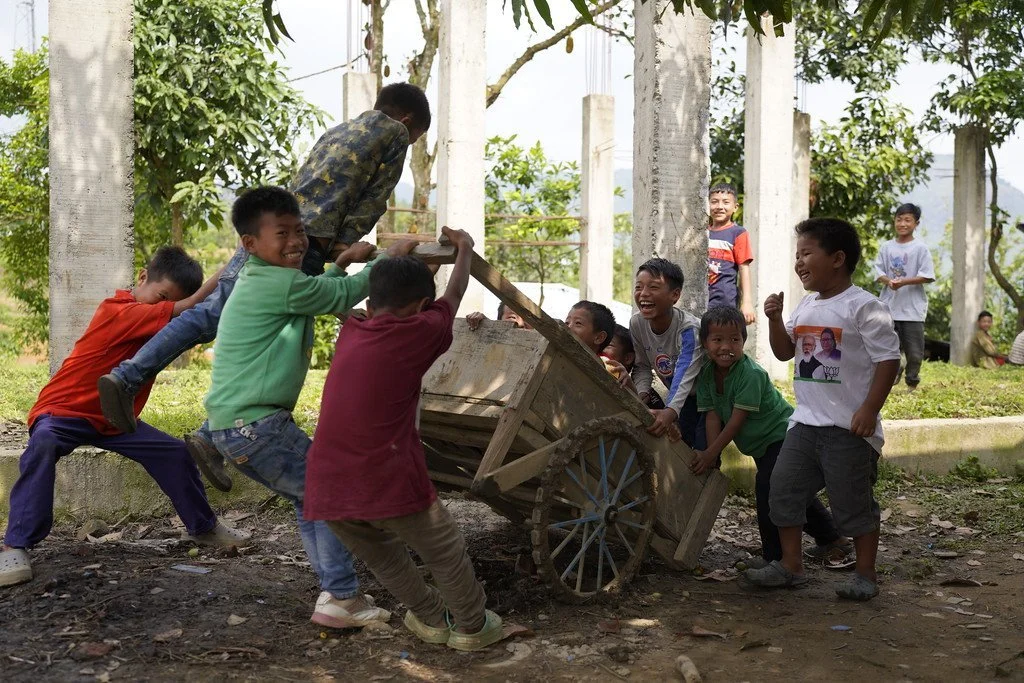 The kids at the Manipur School had loads of fun with their makeshift see-saw!