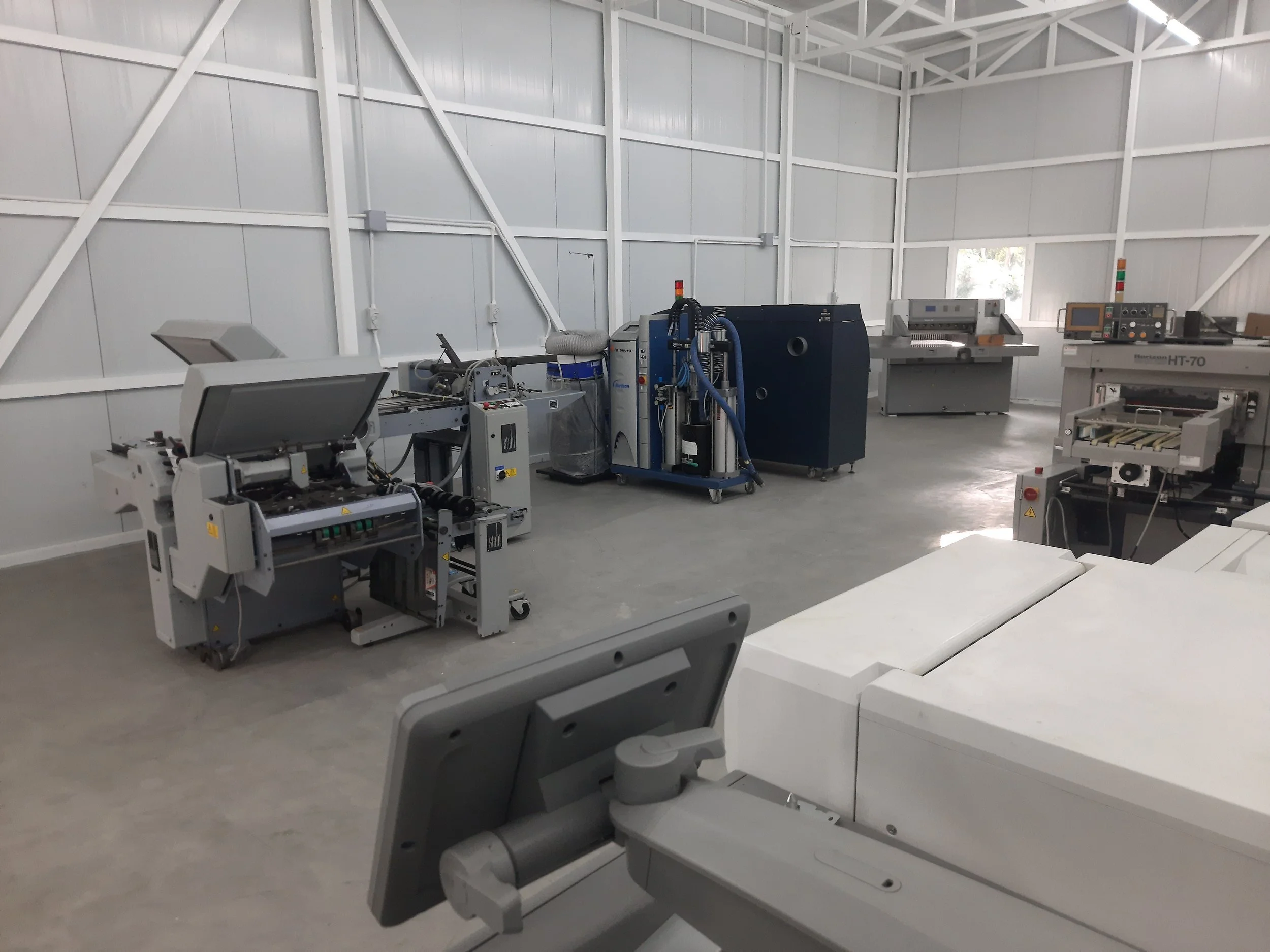 The building for our publishing house in Cambodia is now complete! It is a fully enclosed 60ft by 40ft space that holds all the printing equipment. We have placed, leveled, and arranged the machines to create a good workflow. Each piece is at a different setup stage since electricity has yet to be hooked up to the building.
