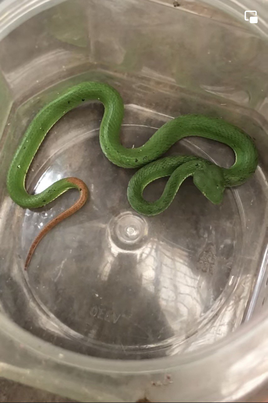Now, she had just gone to the bathroom to get water, only to find a bright green pit viper right in front of the water spout. She screamed and called for her husband to kill it. “I had a complete meltdown,” she said. “I was bawling. You would have thought I had lost someone. I told them, ‘I’m going back to America. I can’t; I’m done.’”