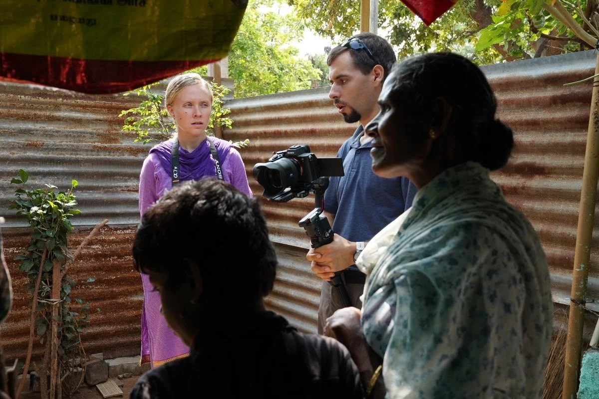 Jonathan and Hannah Hill filming at Mariamma’s home.
