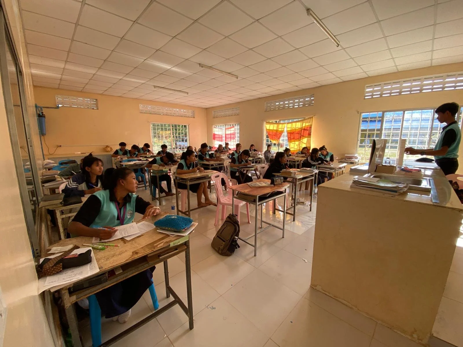 Barbara: “My 11th and 12th graders at work synthesizing English class...There are 28 students in this class. The two grades are combined because of a lack of teachers.”