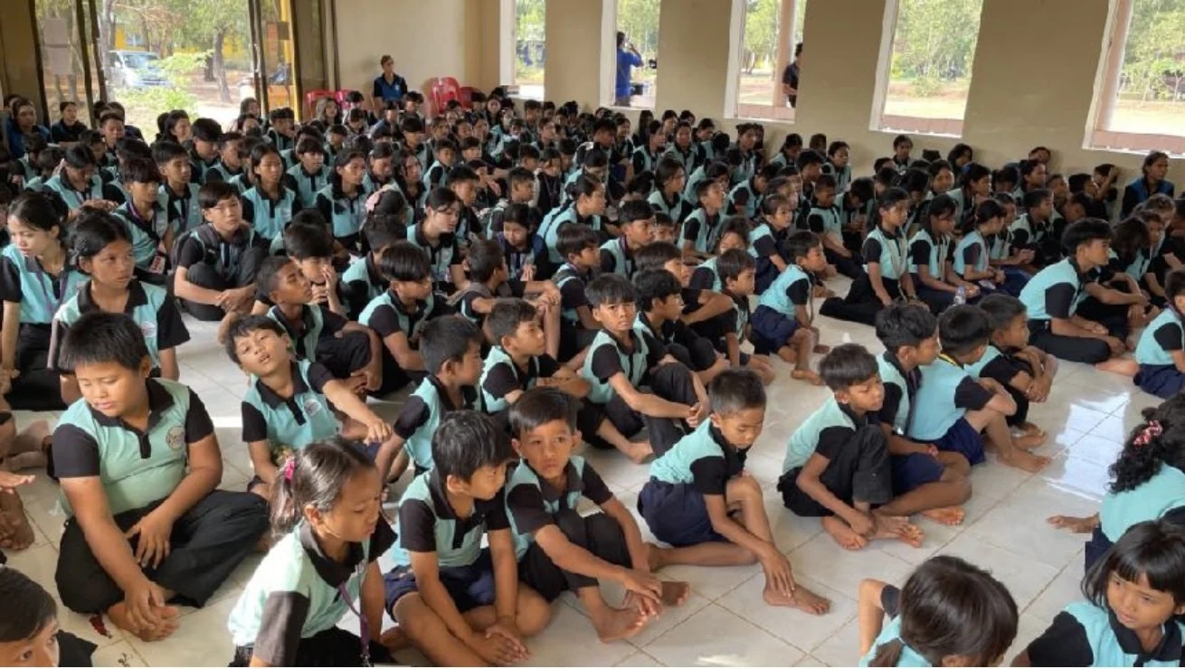 Students at an assembly in Tim and Wendy Maddocks’ school in Siem Reap Cambodia