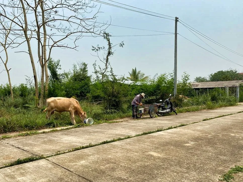 “Chop ma-muang,” our stout eighty-year-old neighbor grinned from under his cowboy hat as our five-year-old daughter gave one of his cows a cucumber. He often pickets [ties up] his cows across the street from our house, and we have gotten to know him as he cares for them each day. The cow mouthed the vegetable for a moment, then let it fall to the ground in obvious disinterest. “Chop ma-muang,” our neighbor chuckled again. His cows prefer mangoes. Don’t we all; I smiled to myself. It’s hard to imagine he’s eighty years old as we see him hauling downed trees out of the forest, pushing his hand cart with six full 5-gallon buckets of water for his cows, and working all day in the sizzling heat of the dry season.